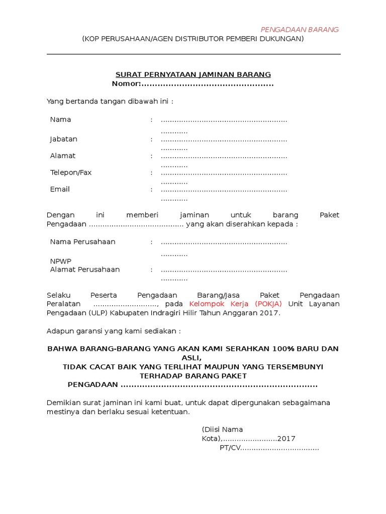 Kalau kita memperhatikan dengan seksama, membuat surat penawaran untuk barang maupun jasa tergolong mudah. Kop surat perusahaansurat pernyataan kesanggupan untuk melaksanakan pekerjaan. Surat ini biasanya digunakan oleh calon peserta didik di sekolah ikatan dinas. Surat pernyataan sendiri memiliki beberapa jenis, seperti surat pernyataan kerja, surat pernyataan kesanggupan, surat pernyataan belum untuk kalangan dinas surat ini digunakan seorang pimpinan untuk menerangkan karyawan atau bawahannya.