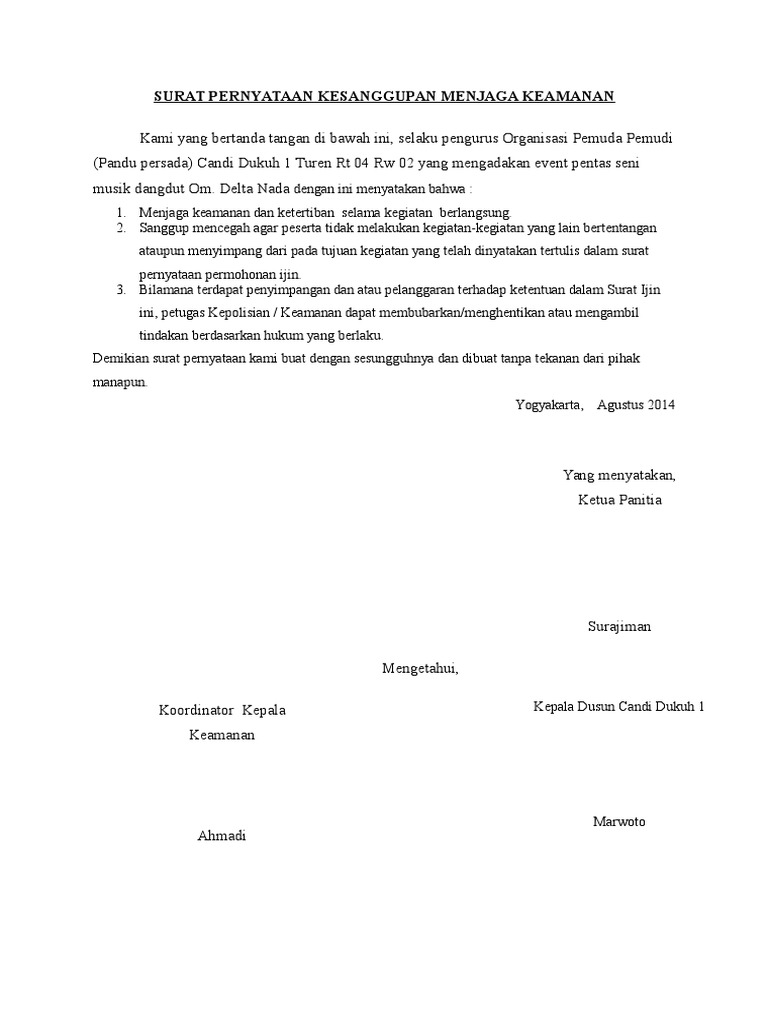 Download kesanggupan contoh surat pernyataan perjanjian