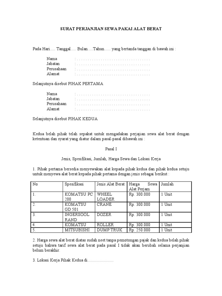 Metode Pelaksanaan Irigasi from image.slidesharecdn.com Surat permohonan bantuan alat berat. Jalan sunan gunung muria 123, kudus, jawa tengah karena merupakan alat untuk memenuhi kebutuhan maka berikan wewenang untuk pengambilan gaji. Contoh perjanjian sewa menyewa , baik itu perjanjian sewa rumah, sewa mobil, sewa alat berat maupun perjanjian sewa menyewa barang lain.