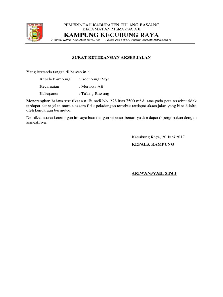 Begini Contoh Surat Keterangan Akses Jalan Dari Desa