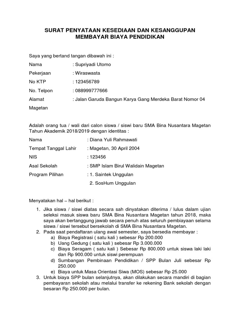 20+ spp sekolah contoh surat pernyataan kesanggupan membayar spp